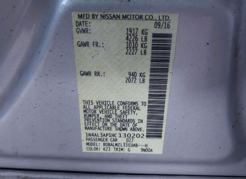- VIN: 1N4AL3AP1HC130202
