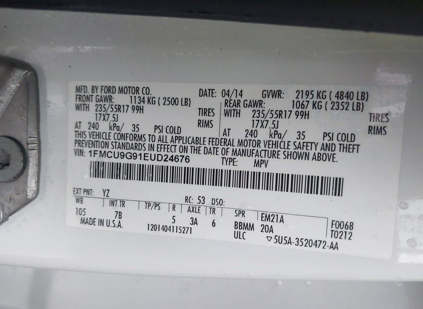 - VIN: 1FMCU9G91EUD24676