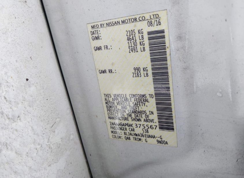 - VIN: 1N4AA6AP6HC375567