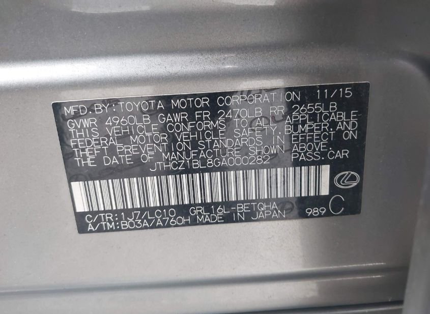 - VIN: JTHCZ1BL8GA000282