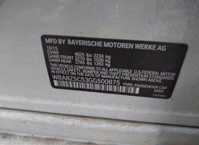 - VIN: WBA8Z5C53GG500875