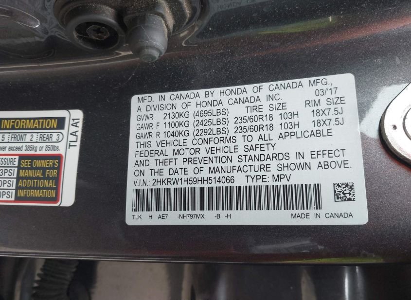 - VIN: 2HKRW1H59HH514066