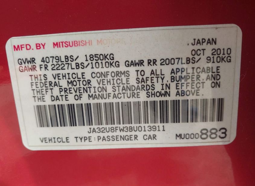 - VIN: JA32U8FW3BU013911