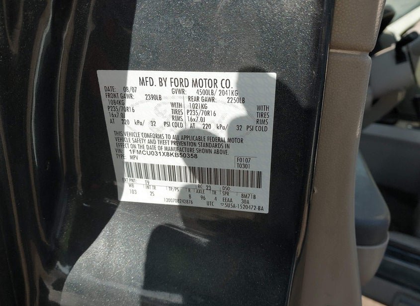 - VIN: 1FMCU031X8KB50358