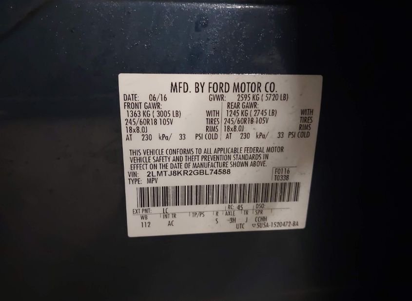 - VIN: 2LMTJ8KR2GBL74588