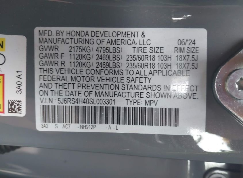 - VIN: 5J6RS4H40SL003301