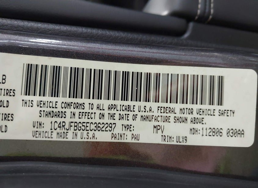 - VIN: 1C4RJFBG5EC362297
