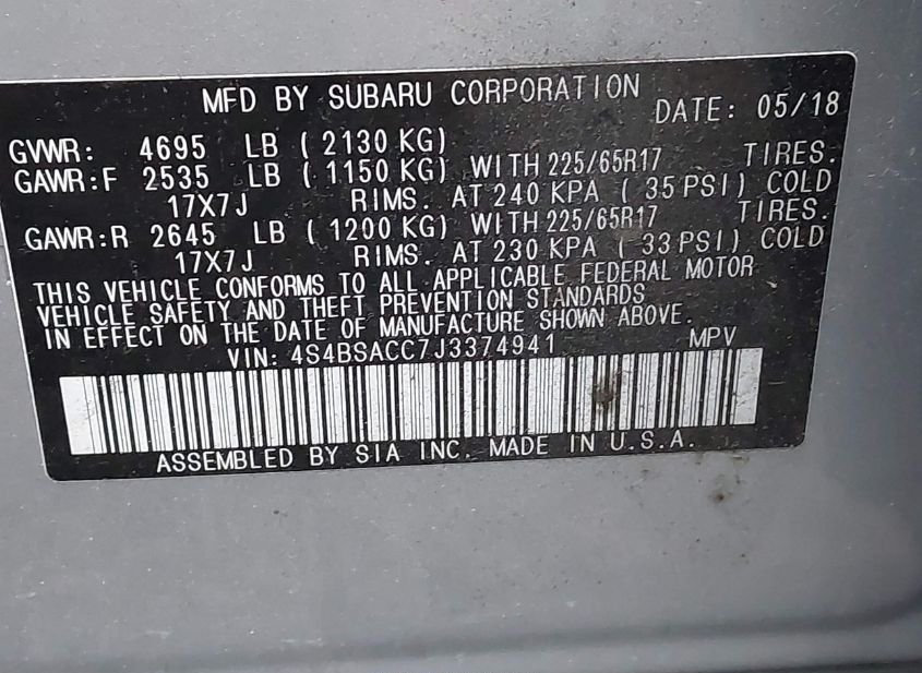 - VIN: 4S4BSACC7J3374941