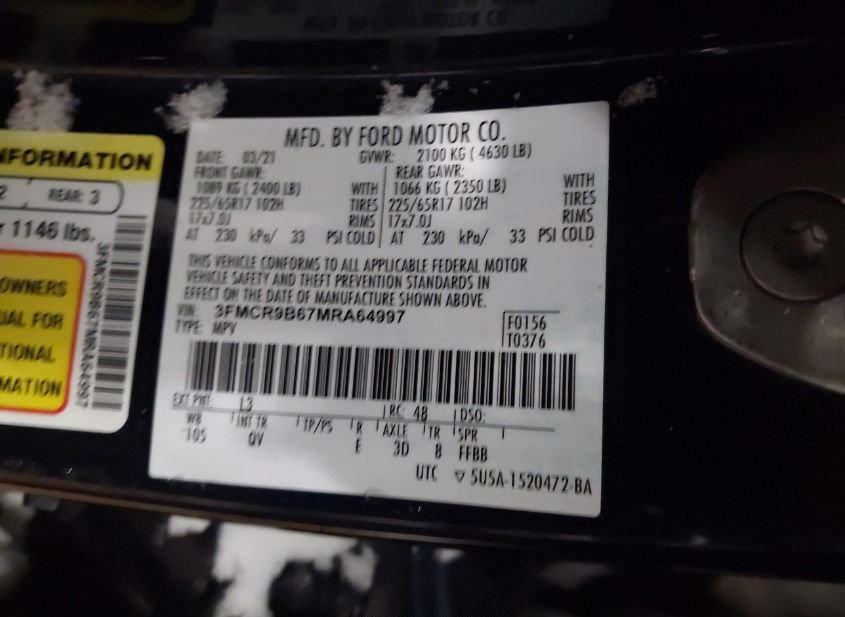 - VIN: 3FMCR9B67MRA64997