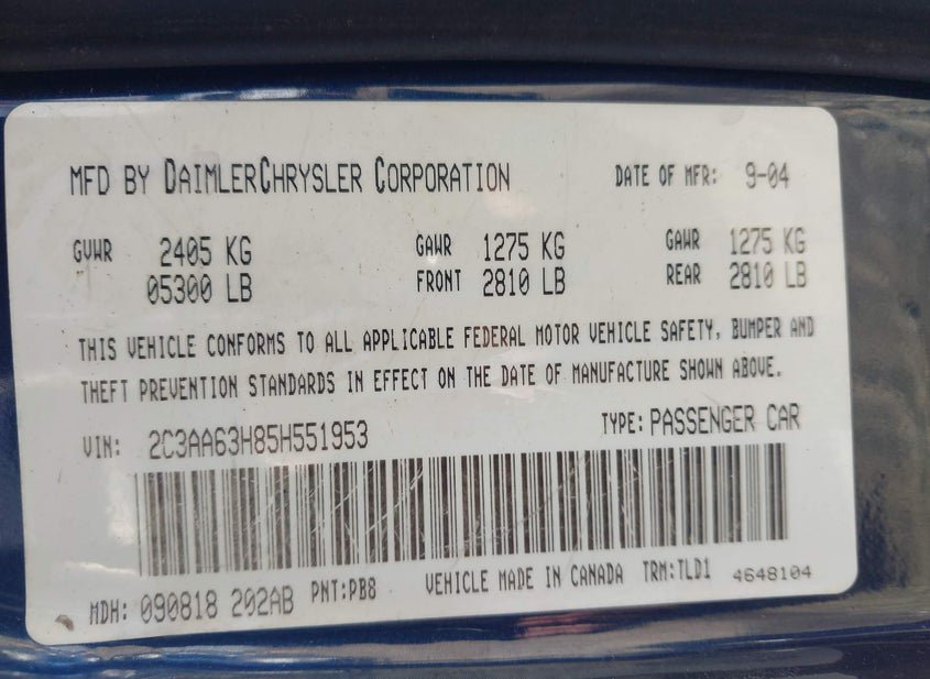 - VIN: 2C3AA63H85H551953