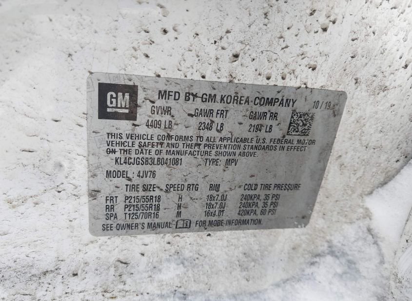 - VIN: KL4CJGSB3LB041081