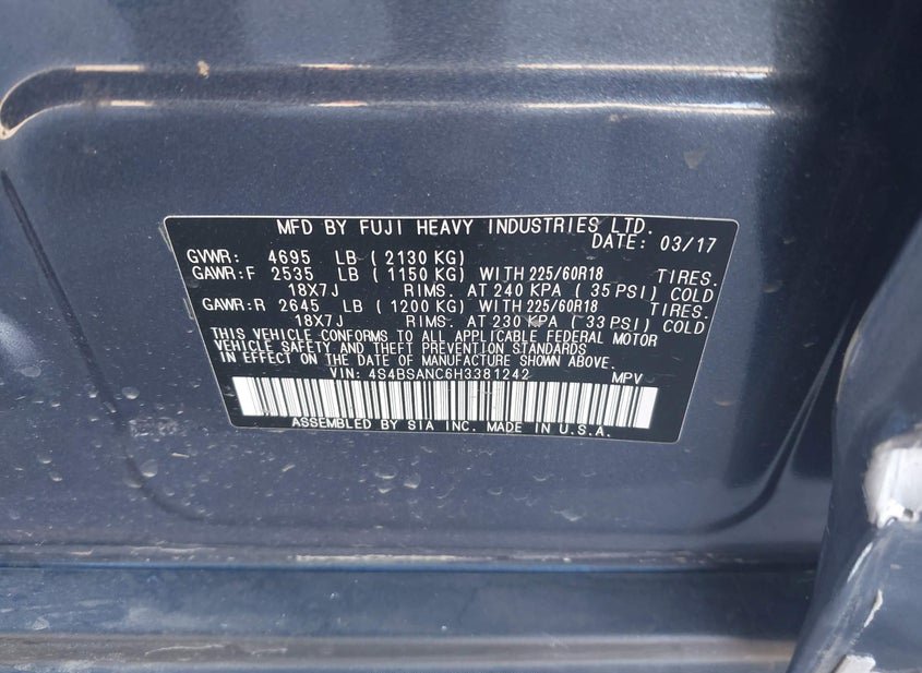 - VIN: 4S4BSANC6H3381242