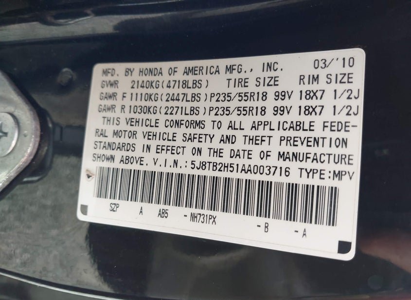 - VIN: 5J8TB2H51AA003716
