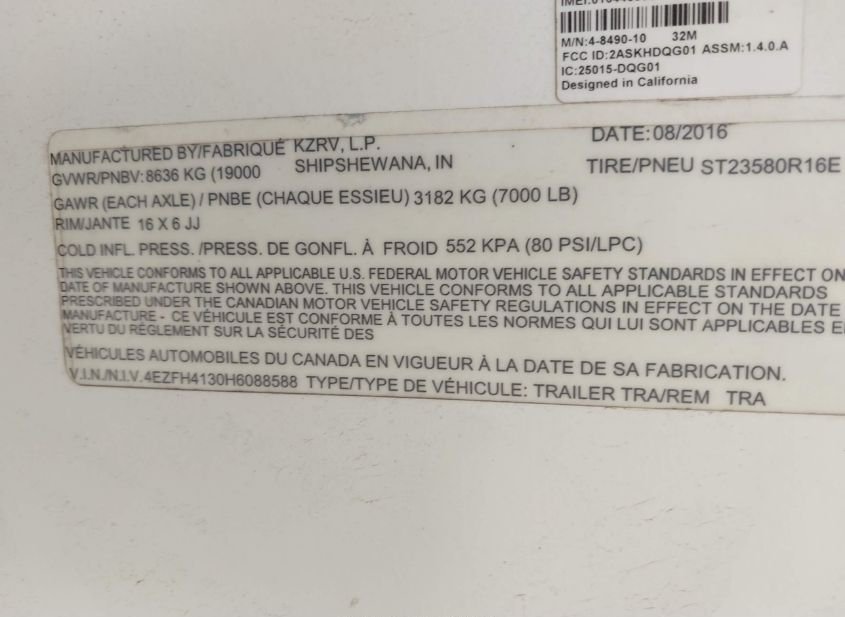 - VIN: 4EZFH4130H6088588