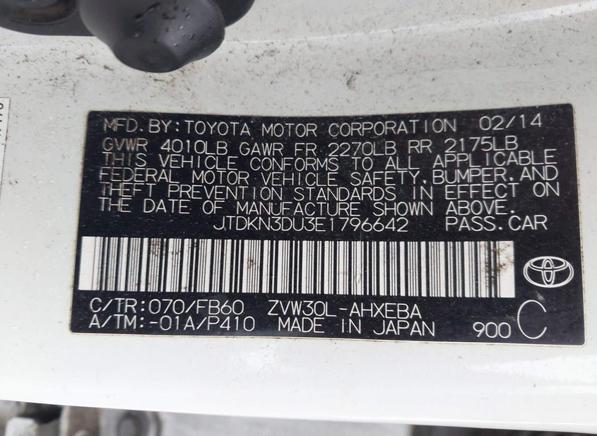 - VIN: JTDKN3DU3E1796642
