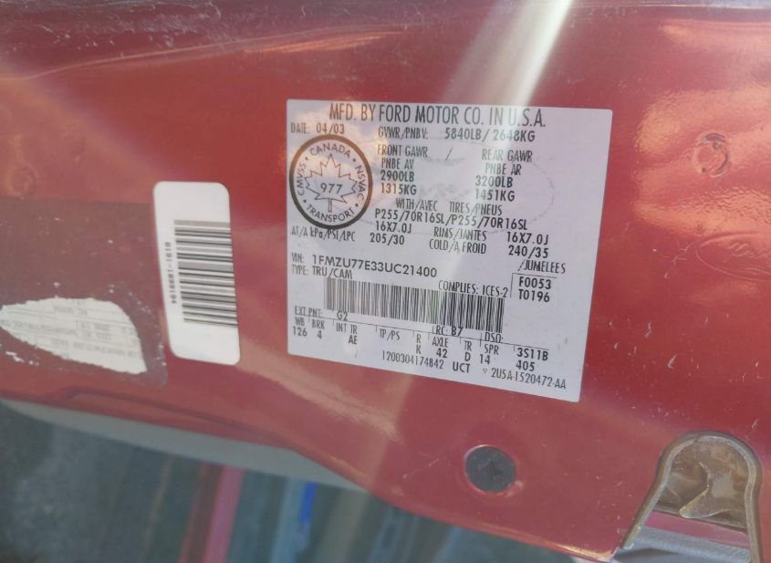 - VIN: 1FMZU77E33UC21400