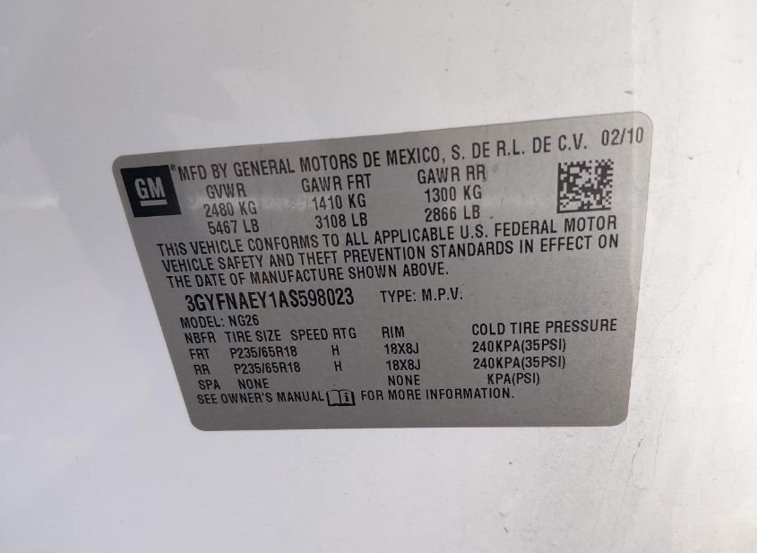 - VIN: 3GYFNAEY1AS598023