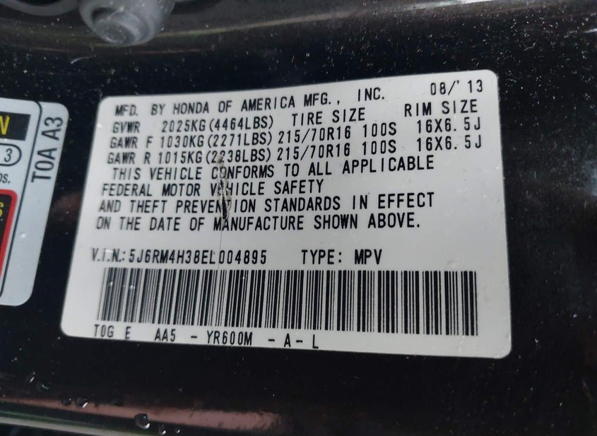 - VIN: 5J6RM4H38EL004895