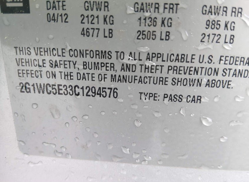 - VIN: 2G1WC5E33C1294576
