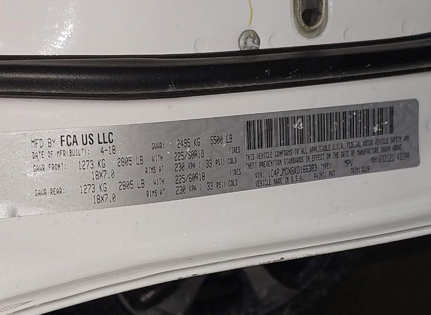 - VIN: 1C4PJMDX6KD166383