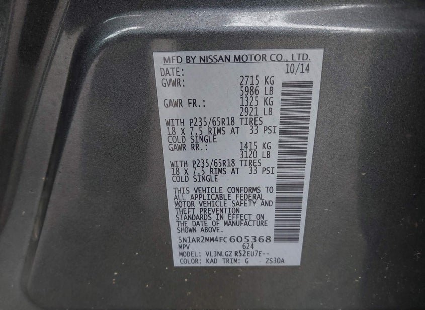 - VIN: 5N1AR2MM4FC605368