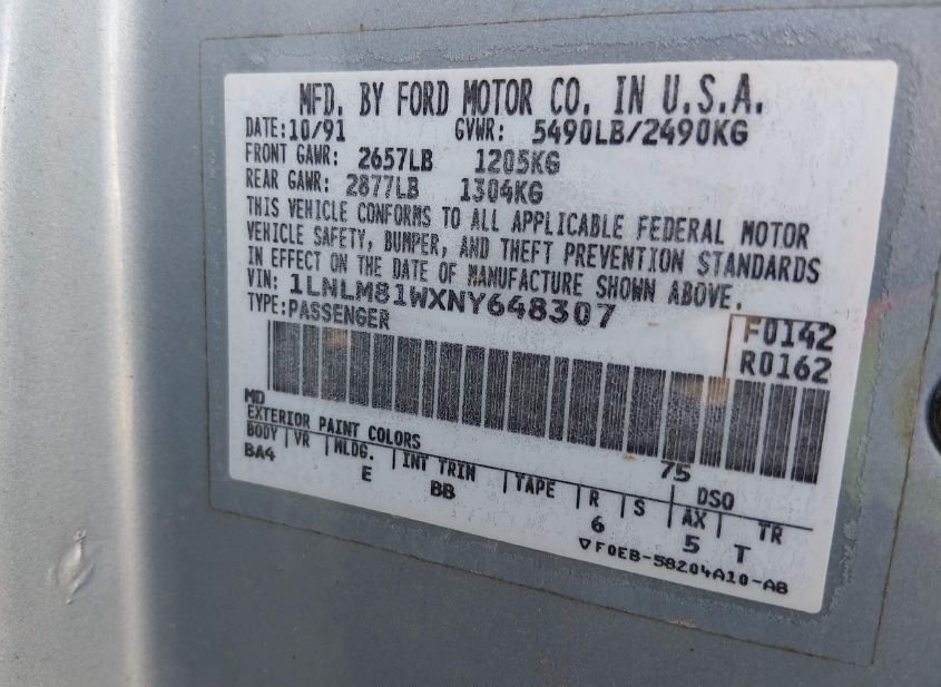 - VIN: 1LNLM81WXNY648307