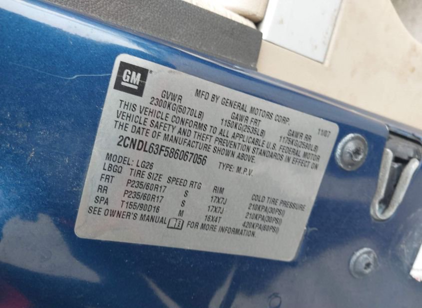 - VIN: 2CNDL63F586067056