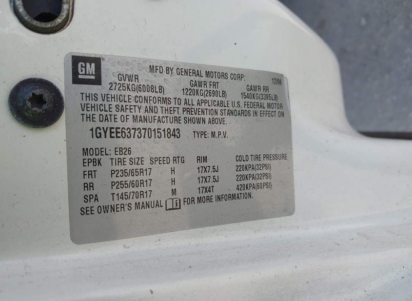 - VIN: 1GYEE637370151843