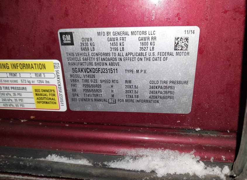 - VIN: 5GAKVCKD5FJ231511