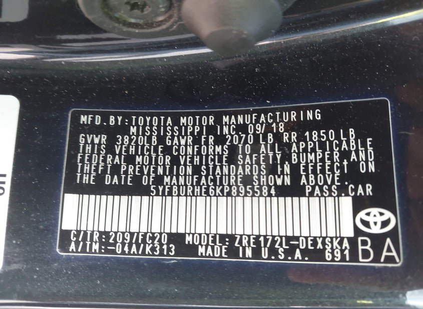 - VIN: 5YFBURHE6KP895584