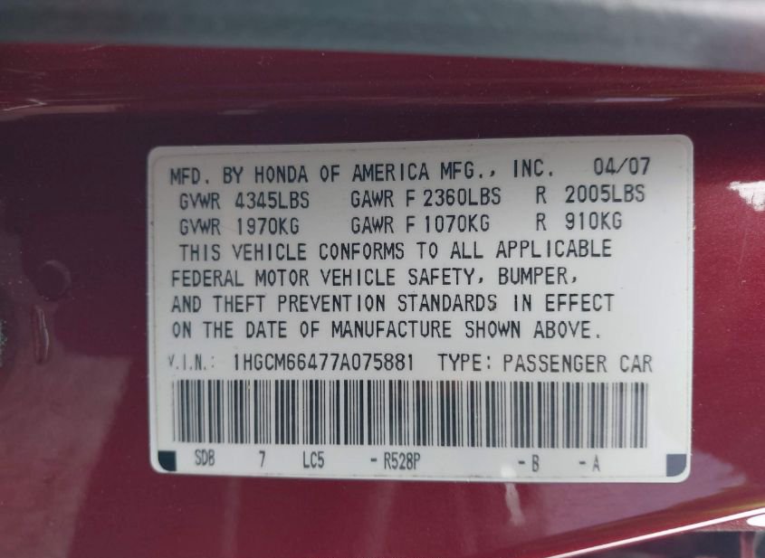 - VIN: 1HGCM66477A075881
