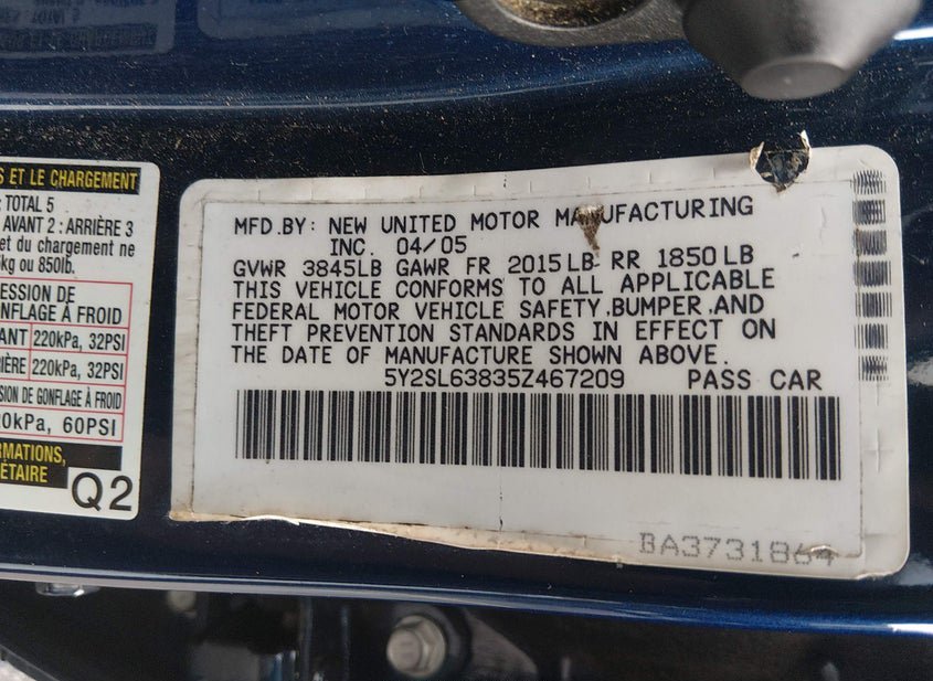 - VIN: 5Y2SL63835Z467209