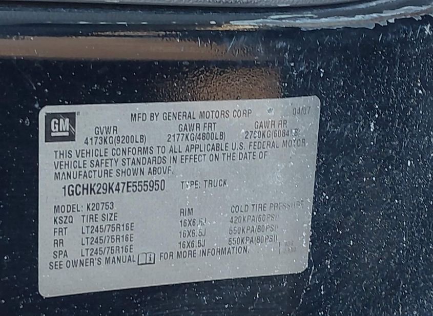 - VIN: 1GCHK29K47E555950