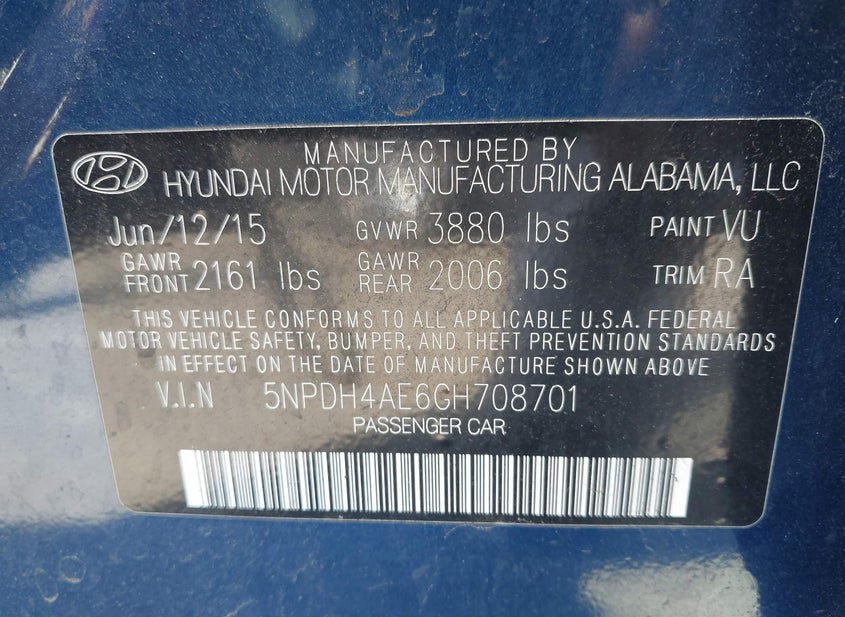 - VIN: 5NPDH4AE6GH708701
