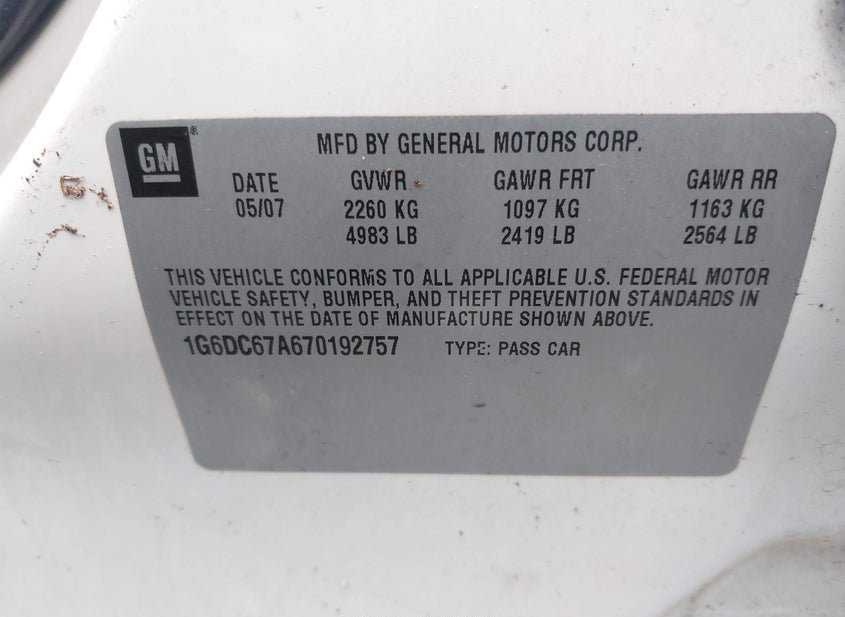 - VIN: 1G6DC67A670192757
