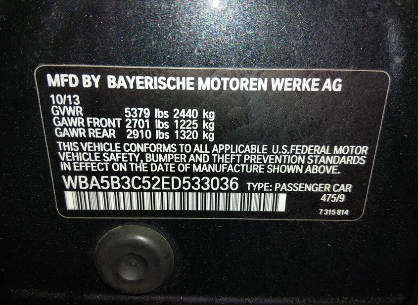 - VIN: WBA5B3C52ED533036