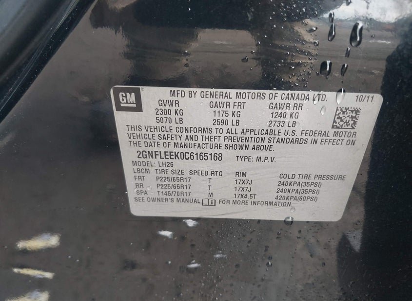 - VIN: 2GNFLEEK0C6165168