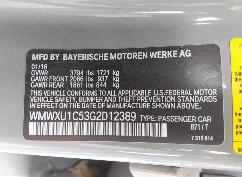 - VIN: WMWXU1C53G2D12389