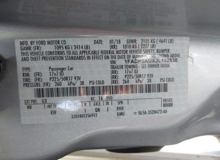 - VIN: 1FADP5AUXJL102830
