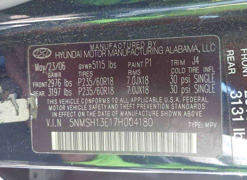 - VIN: 5NMSH13E17H004180