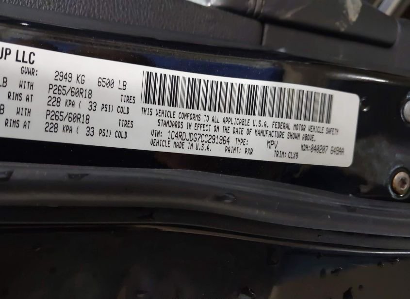 - VIN: 1C4RDJDG7CC291964