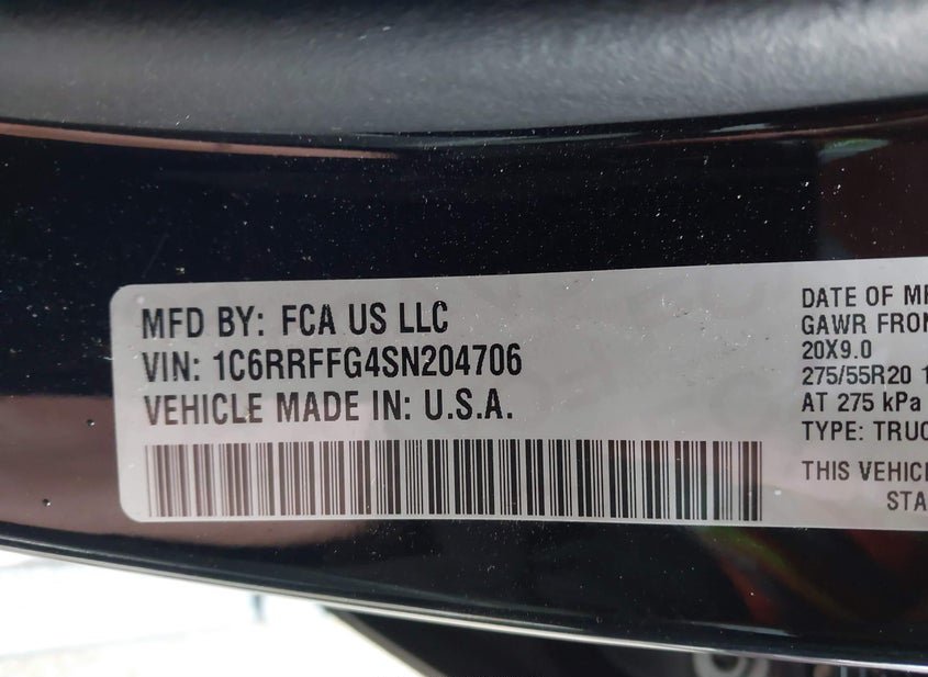 - VIN: 1C6RRFFG4SN204706