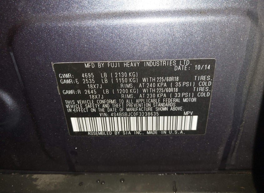 - VIN: 4S4BSBJC0F3238635