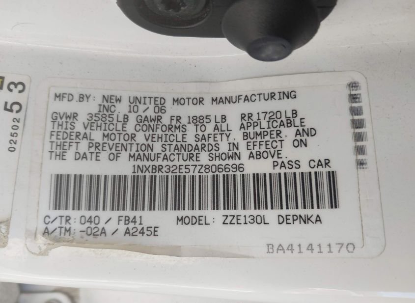 - VIN: 1NXBR32E57Z806696