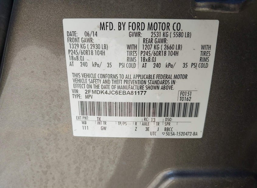 - VIN: 2FMDK4JC6EBA81177