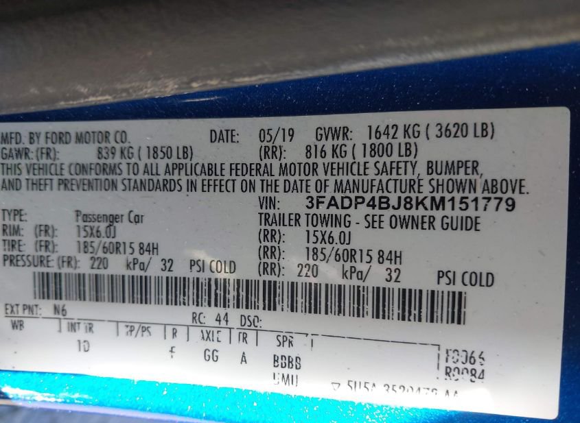 - VIN: 3FADP4BJ8KM151779
