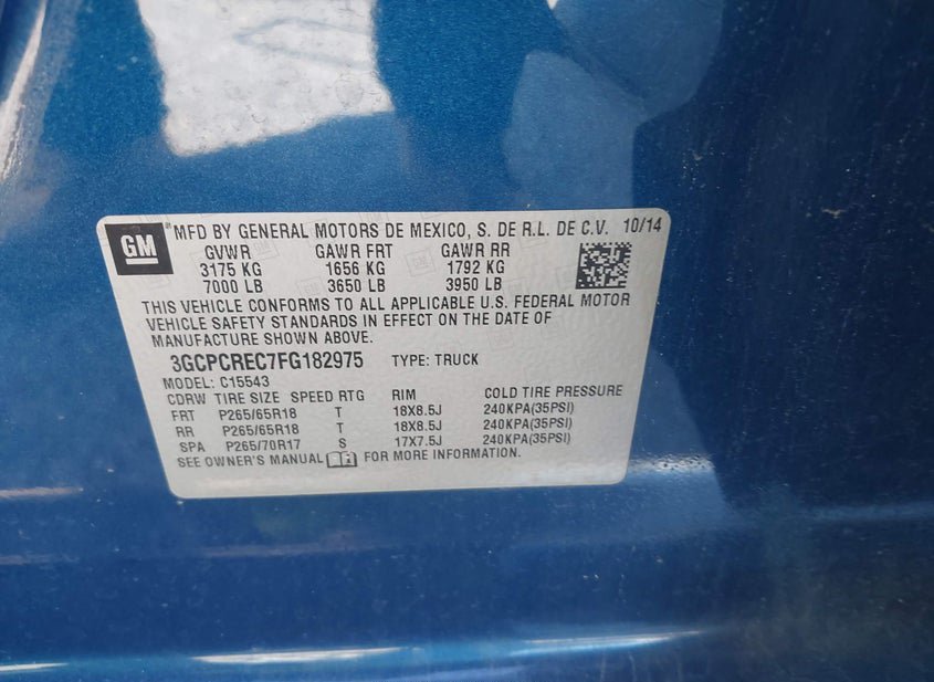 - VIN: 3GCPCREC7FG182975