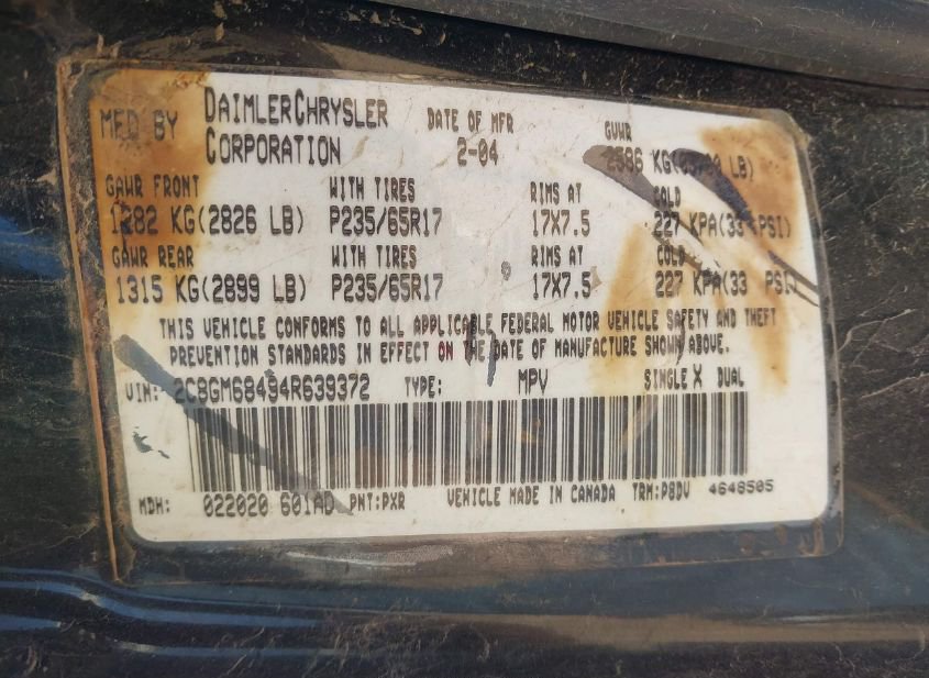 - Название лота: 2004 CHRYSLER PACIFICA