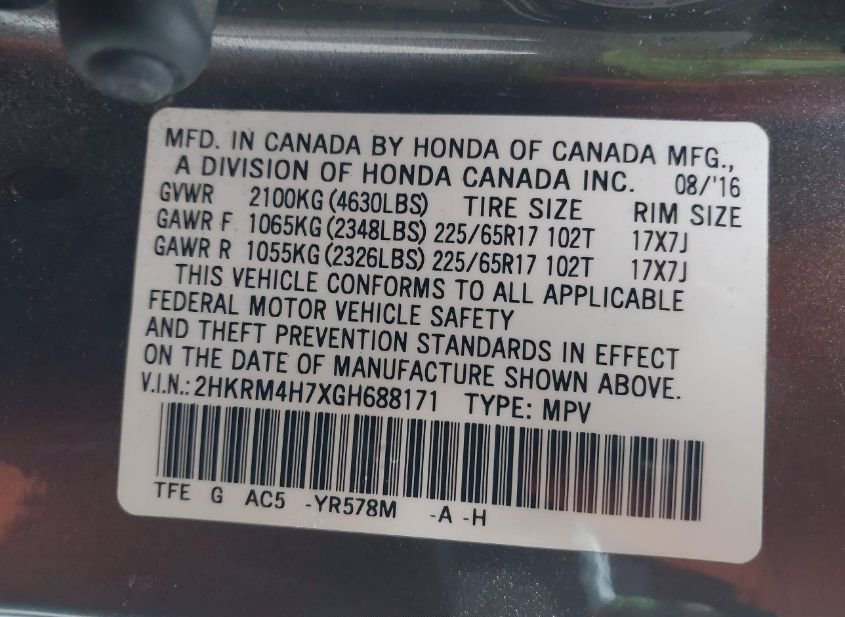- VIN: 2HKRM4H7XGH688171