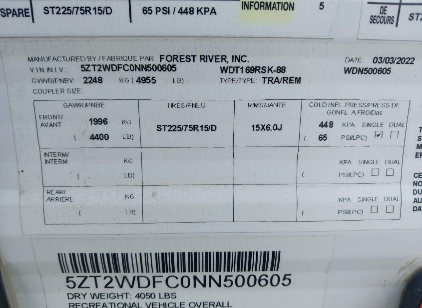 - VIN: 5ZT2WDFC0NN500605